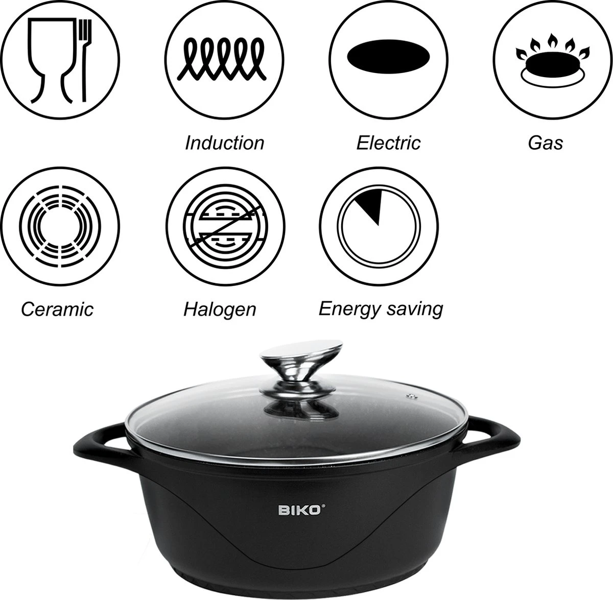 BIKO – Smile Pannen 8 Delige Pannenset – Braadpan – Zwart