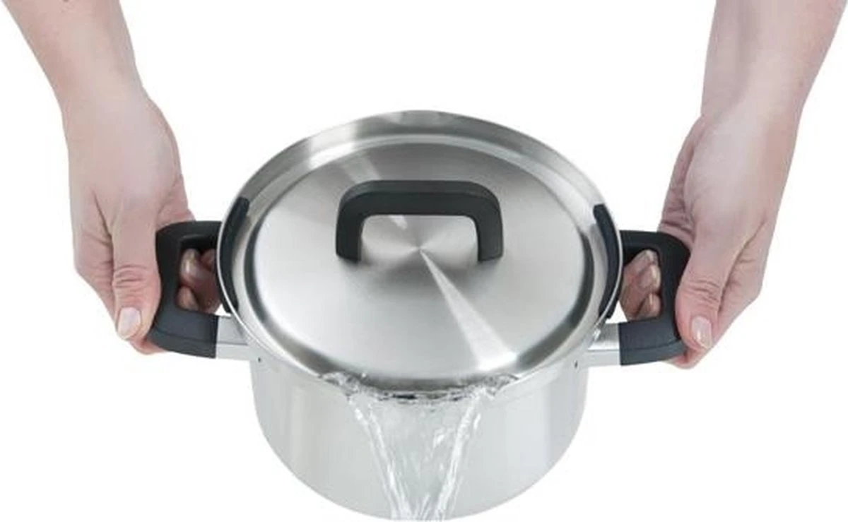 Na gebruik kunnen de pannen gereinigd worden in de vaatwasser. Daarnaast zijn ze goed stapelbaar vanwege de hooggeplaatste grepen; zo bespaar je ruimte in de keukenkast. Extra voordeel is dat deze pannenset inductie geschikt is