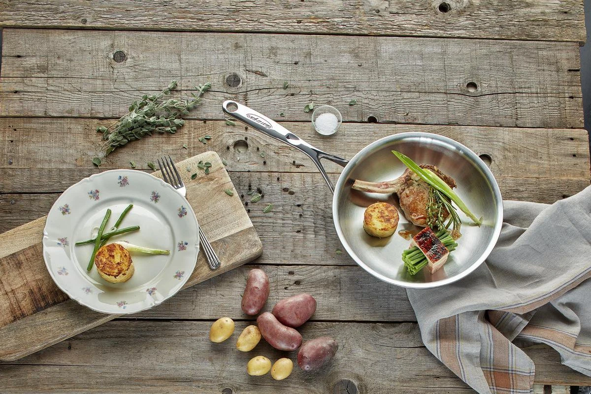 De Demeyere Proline pannen zijn de ultieme bak-/koekenpannen voor de professioneel maar ook voor de echte kookliefhebber. Ze zijn gemaakt van 7-lagenmateriaal tot aan de rand van 4,8 mm dik, bakken daardoor echt tot aan de rand en bieden zo tot 50% meer bakoppervlakte. Door het slimme ontwerp van de nieuwe rand bij de Proline bakpannen van Demeyere kunnen ze voortaan veilig in de vaatwasmachine, zonder de aluminiumlaag aan te tasten.