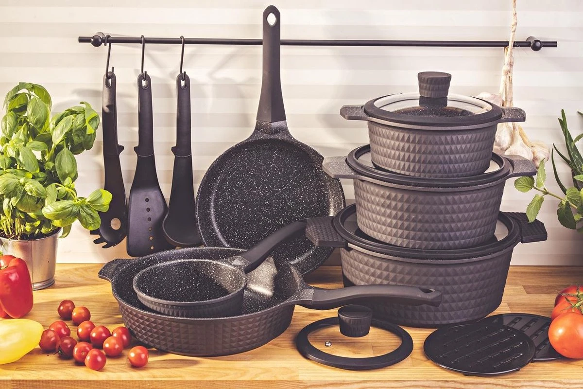 De uitgebreide set is ideaal voor de starter maar ook voor de ervaren kok ter vervanging of aanvulling van de huidige pannen. Of je nu voor iedereen een visje wilt grillen op de plaat, een stukje vlees wilt bakken in de pannen, een verse saus bereiden of de groenten koken: het kan allemaal op een gemakkelijk wijze zonder aankoeken en moeilijk schoonmaken.
