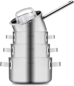 Herenthal inductie pannenset is voorzien van een 3-laagse antikleeflaag, waardoor het 100% vrij blijft van blootstelling aan schadelijke stoffen. En het is zwaar en stevig, voor langdurig gebruik. De pannenset heeft cool-touch ergonomische en hittebestendige handgrepen die zorgen voor comfortabel en veilig koken.