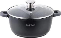 Cheffinger Pannenset – 10 Delig – Marmeren Coating – Inductie – Met Glazen Deksels – Zwart