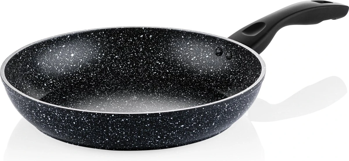Met de Westinghouse Zwart Marmer Koekenpan (28cm) haal je een mooie basis pan in huis. De uiterst sterke anti-aanbaklaag maakt dat je stukje vis of gebakken groentjes niet vastplakken, zelfs met weinig vetstof. De pan is gemaakt uit aluminium wat zorgt voor een snelle opwarming en gelijkmatige warmteverdeling. Zo bak je de aardappeltjes altijd mooi egaal bruin.