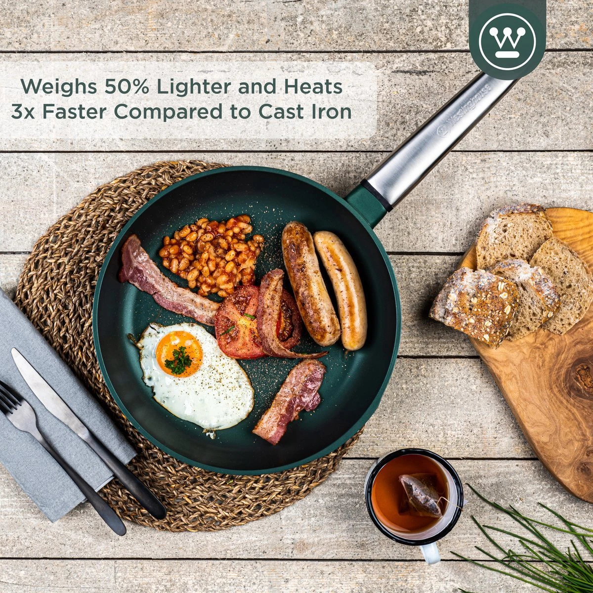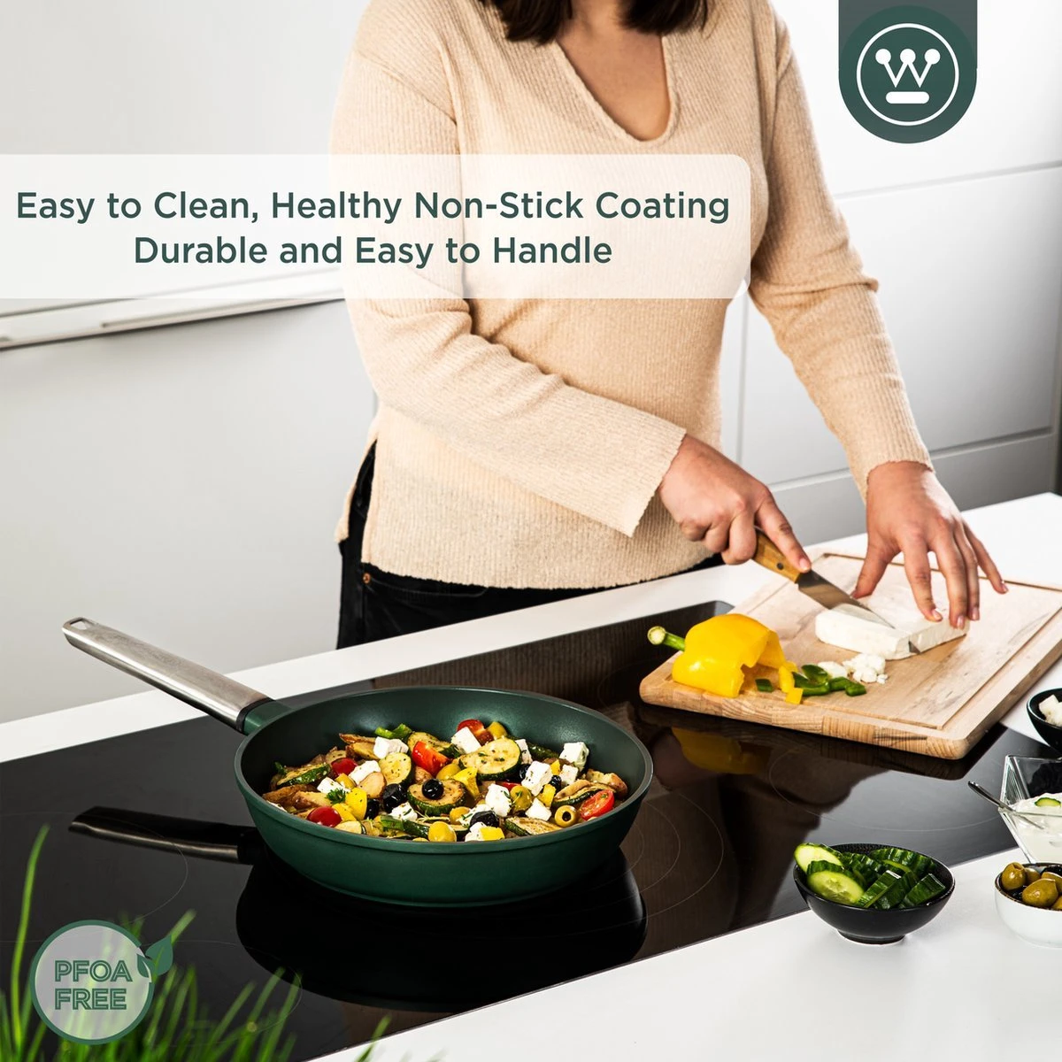 Westinghouse Pannenset – Performance Series Koekenpan 24cm + Koekenpan 28cm – Groen – Koekenpannenset 2-delig – Geschikt Voor Alle Warmtebronnen Inclusief Inductie
